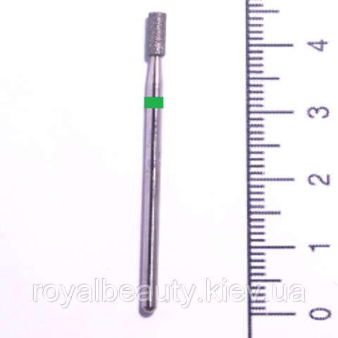 Алмаз малий.Циліндр No56 зелена насічка діаметр 2.5 мм.Очонь зручна під час оброблення бічних валиків, обпилювання під нарощеними нігтями, випілювання відшарувань. Також тонка циліндрична фреза застосовується для врослих нігтів і випилювання затілого гелю.