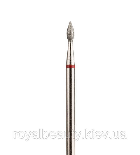 Алмаз малий. Пламеподібна No 97 червона насічка діаметр 1.8. Пламеподібні насадки дають змогу робити дбайливу й ефективну оброблення бічних і задніх пазух у манікюрі, зачищати птеригій, підіймати валик